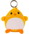 - Soft plush character key rings - grey dolphin, grey hippo, light brown dog, light brown hedgehog, pink bunny, turquoise dinosaur and yellow chick.